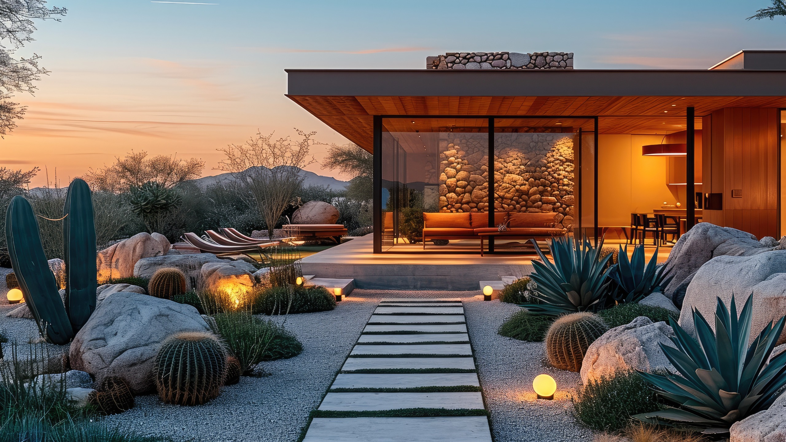 Removing green grass, bushes, and high-need trees gives you some freedom to choose more unique decorative elements. For instance, large boulders draw the eye to specific areas. You can also choose striking types of cacti to add height and color to a rocky landscape. Decorative rock beds filled with various colors of landscaping pebbles can also create the perfect background for a few strategically placed plants, and Mexican beach pebble Raleigh landscapers frequently recommend adds a smooth, natural texture that complements desert-themed designs beautifully.